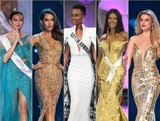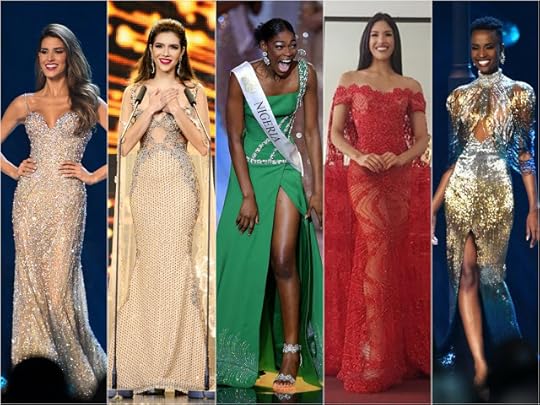 Best of the Best--Selection of my TOP PICKS for BEST PAGEANT GOWNS of 2019 (L to R) Miss World Philippines Michelle Dee, Miss Universe Indonesia Frederika Alexis Cull, Miss Universe South Africa (and Miss Universe 2019) Zozibini Tunzi, Miss Universe Philippines Gazini Ganados, and Miss Universe Puerto Rico Madison Anderson