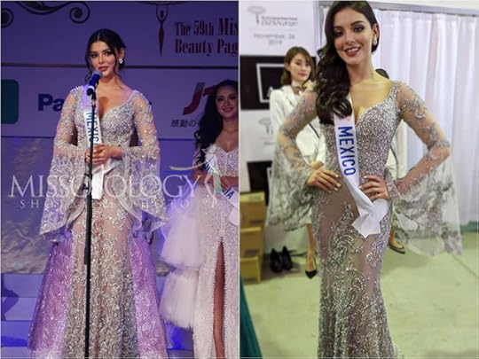 Miss Mexico International Andrea Toscano--Andrea wore this shimmering silver gown that made a very strong gown impression during the Miss International 2019 Finals in Japan. The design featured stunning silver beaded and pearl sequin applique over a netting background. It was fully covered in beads at the sweetheart necklined torso and had these dramatic bell-shaped sleeves. It fit her beautifully and I liked that it was lined as opposed to fully see-through for a change. This was my other TOP FAVORITE GOWN from Miss International 2019.