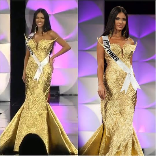 Miss Grand Ecuador Mara Topic--Mara looked elegant and very beautiful in this gold sequined gown. It was dramatic, figure-flattering and I especially loved the back golden cape. I also liked that the entire gown wasn't entirely sheer and that the length was perfect (no sight of those tacky platform heels!).