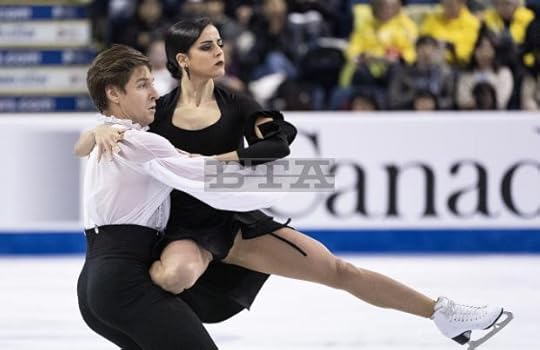 Kirsten Moore-Towers and Michael Marinaro Canada Short Program--Canada's Moore-Towers and Marinaro skated their Short Program to Love On the Brain (Los Feliz Blvd) feat. Bishop Briggs. I liked these pretty costumes worn by Kirsten and Michael. The striped sequin detail on her dress was nice and I also liked his sheer/solid panels down his back.