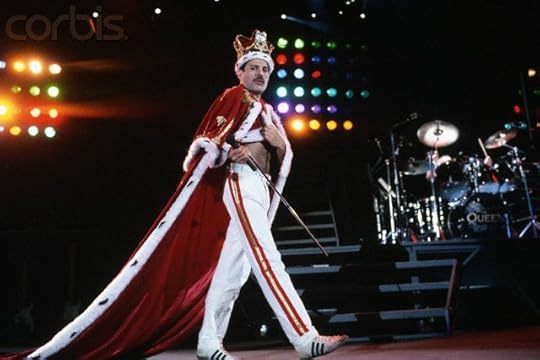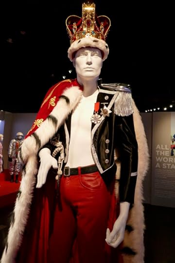 Marjorie Lajoie and Zachary Lagha Canada Free Dance--For their Free Dance to Bohemian Rhapsody by Freddie Mercury performed by Queen, they wore these great costumes above. Notice the slight but definite tribute to Mercury's "Bohemian Rhapsody" look from the concert photo above in the striped trim down the sides/outseam of the pants. In addition, notice the Moto-Jacket inspiration in Zachary's costume and the costume from the film in the above photo (from the FIDM Museum Exhibition earlier this year). I also liked her strawberry-red dress as a nice bookend to his. Well done overall.