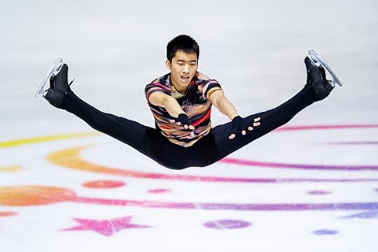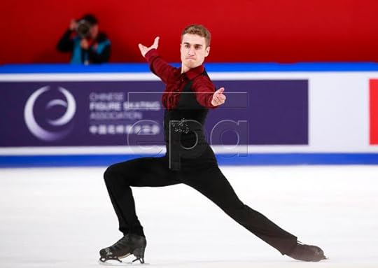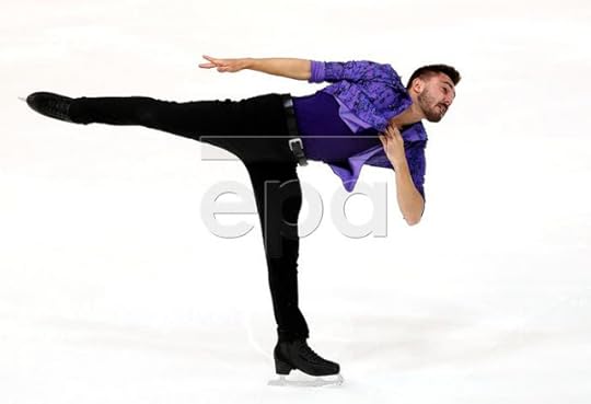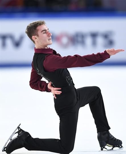 Kevin Aymoz France Short Program--Yes kids, this French boy skated to The Question Of U by Prince, as seen from the purple sequined and Lycra top underneath. Oh, and he also wore black pants with a black belt. I have to say there are more creative ways of honoring Prince than this so I wasn't a fan. He looked like he went to a Cruise and found out he was doing a Prince sing-a-long and then bought this at the ship's souvenir shop.