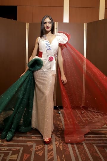 11. Miss Italy International Francesca Giordano--I loved the way this costume paid homage to the iconic Italian flag with a design that featured sparkly netting in green, white and red in a column dress with shoulder and hip flourishes. This design somehow did a great job of being fashionable and "National Costume" appropriate.