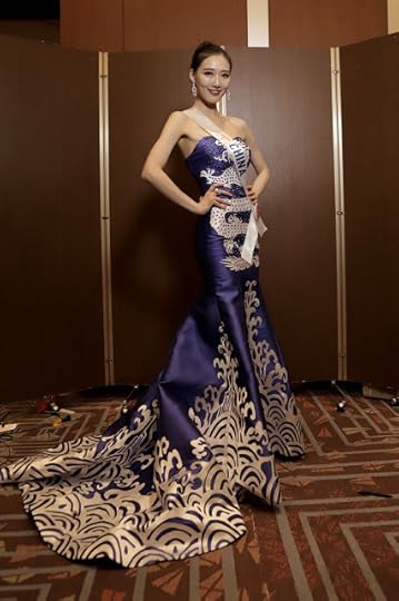 13. Miss China International Ten Yun-Xuan--For her "National Costume", China's representative wore this gorgeous violet-colored strapless gown. It was pretty stunning. I loved the shite applique details which showcased a dragon motif in the front and beautiful scroll-like details. This was a gown version of those iconic Ming Dynasty vases. It was a nice way of showing style and fashion and yet, still giving homage to the Chinese culture.