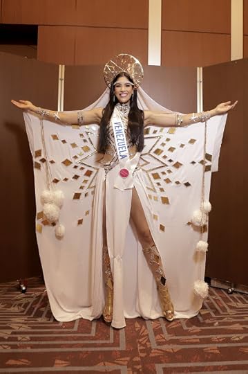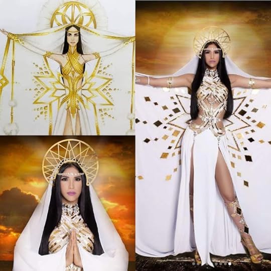 15. Miss Venezuela International Melissa Jimenez--Inspired by the Wayuu tribe's Princess Wajayura, from the Guajira indigenous tribe. Designed by Julio Mora, it is supposed to be a "modern abstract" version of this Guajira queen. I love the angelic inspiration, the beautiful gold and silver sequin torso detail and that golden halo crown. Pretty chic and stunning at the same time.
