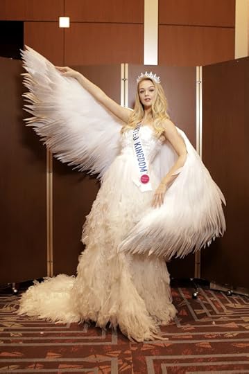 16. Miss United Kingdom International Harriotte Lane--Harriotte's national costume, designed by Kathryn Russell, represents the queen of birds in the United Kingdom, the Mute Swan. Queen Elizabeth II owns and protects all of them. The design is supposed to celebrate people's differences and support those with the greatest of dreams and help them achieve them. As Harriotte feels like she herself is a swan, she wanted to wear this as her Miss International National Costume.