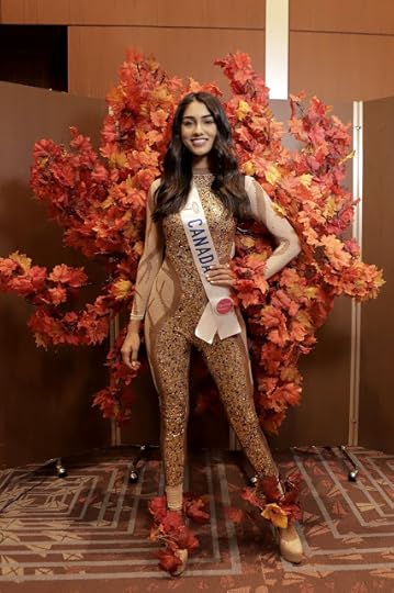 18. Miss Canada International Megha Sandhu--Maple Leaf Fabulousness is the theme here as seen in Megha's golden sequined jumpsuit with maple leaf "wings" and shoe accents. The costume is pretty sexy and striking a definite Canadian inspiration, worthy of being here in my Top 20.