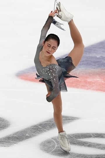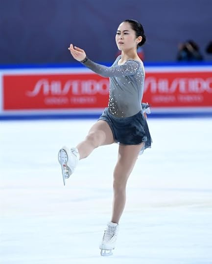 Satoko Miyahara Japan Free Skate to Hatikva: Theme from “Schindler’s List”/Prelude in C-Sharp Minor/Hatikva--For this Free Skate to "Schindler's List", I really liked this ombre gray costume with delicate beading. I especially liked the ruffles on her sleeve and wrist volant details. She looked like a sublimely beautiful water creature. The sequin crystals displayed on the shoulder, part of the top and sleeve, were quite beautiful in their placement.