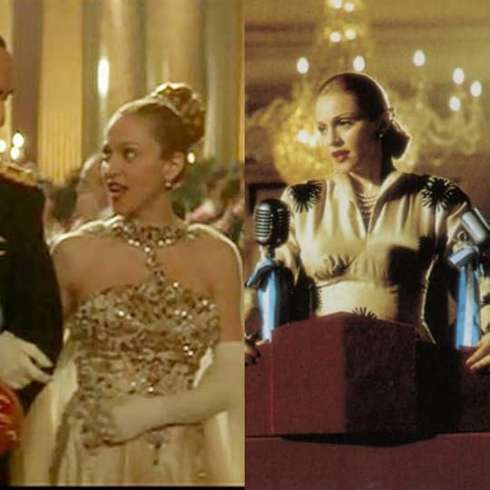 Free Skate to The Chairman’s Waltz, Going to School, Sayuri’s Theme and Becoming A Geisha (from "Memoirs of a Geisha" soundtrack) by John Williams--For her Free Skate, Evgenia wore this. It was STUNNING! I loved everything about this costume. This was Skating Couture on another level! I loved the kimono-like silhouette, the white neckband, the gorgeous sequin applique, the extra-long sleeves and last but not least, the red Obi with gold waist-tie. I also especially liked the extra-long sleeves...And that deep-red lipstick: Wow. Just gorgeous. I bow down to whoever designed it and made it.