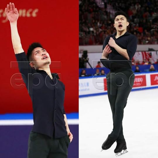 Free Skate to La La Land (soundtrack) by Justin Hurwitz--For his Free Skate to "La La Land", Yan Han wore a look inspired by Ryan Gosling's character in the movie. It was relaxed/retro and jazz-adjacent. He wore a navy blue shirt, untucked, with black pants. I get the look but I just wished there was some "figure skating stage" factor...like maybe one or two sequins??? Somewhere? Anywhere?