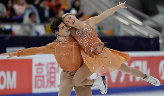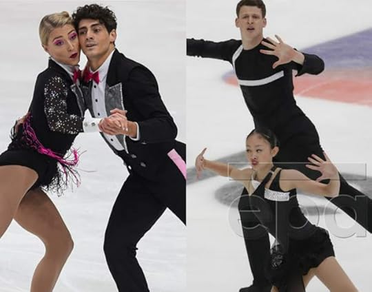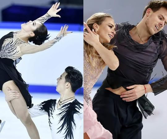 Pharaohs, Flashdance, Russian Red--Costumes from Ice Dance and Pairs skaters at the 2019 Internationaux de France (L to R) Madison Chock and Even Bates of USA, Gabriella Papadakis and Guillaume Cizeron of France, and Anastasia Mishina and Aleksandr Galliamov of Russia