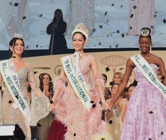 Thailand Winner--Miss Thailand International Sireethorn Leearamwat is the new Miss International (Center) with 1st Runner-up Miss Mexico International Andrea Toscano (L) and 2nd Runner-up Miss Uganda International Evelyn Namatovu Kironde--Miss International 2019 Finals, Tokyo Japan