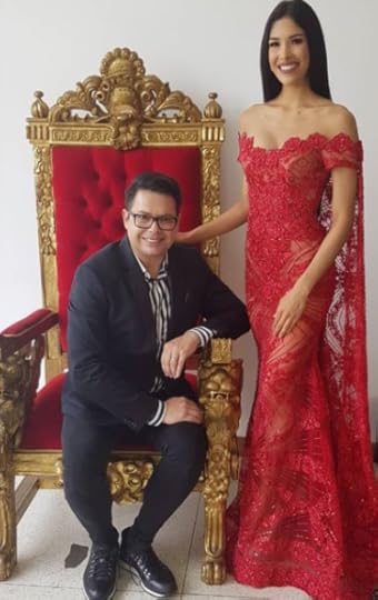 1. Miss Venezuela International Melissa Jimenez--Melissa didn't make the Top 8 but was in the Top 15. Wearing this gorgeous red sequined gown from Venezuelan designer Douglas Tapia, she looked like Pageant Perfection. The minute I saw this gown, it was like a "Drop-the-Mic" moment. The gown featured red sequined applique on nude stiff netting, beautifully applied in an off-the-shoulder very fitted column dress design with a dramatic attached cape.  The dress was "nude" in that it was see-through but she did wear a nude leotard (like an Haute Spanx) that covered her torso. The design was impacting, looked very Haute Couture and fit her perfectly.
