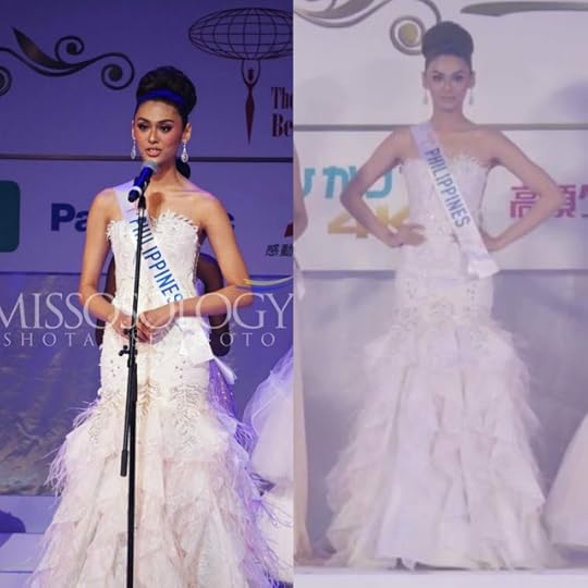 She wore the same style gown but in a different color at the "Front Row Cares and the Universe Gives Back Charity Fashion Gala" earlier in the year in the Philippines.