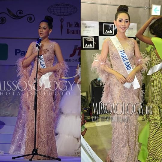 4. Miss Thailand International Sireethorn Leearamwat--At No. 4 was the gown worn by the eventual Miss International 2019 winner from Thailand. She wore this blush pink colored dress that featured a completely beaded dress over tulle/netting with feathers. The look was accessorized with armbands in blush-pink colored feathers. It was pretty and the sequin applique was exceptional. I just wasn't a fan of the arm feathers; they weren't necessary.