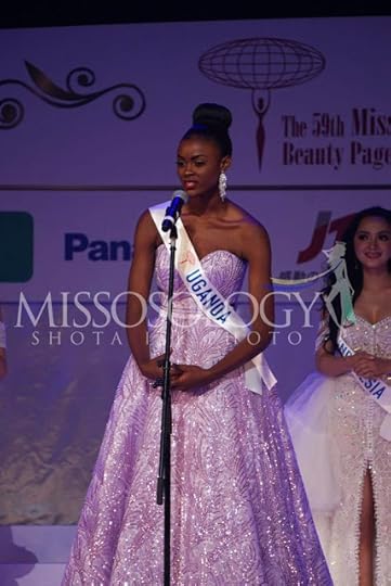 7. Miss Uganda International Evelyn Namatovu Kironde--Evelyn wore this pink sequined ballgown when she was named as part of the Top 8. With her 5' 11" tall model stature and perfect figure (she won the Best in Swimsuit at the 2019 Miss International Beauty Pageant), I would have not chosen this style of a gown for her but rather something more form-fitted and dramatic. This shape made her look a bit "Prom Girl"-like unfortunately.