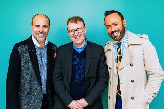 Lace Master Class--Co-Chairs of  FIDM Fashion Design David Paul (L) and Nick Verreos (R) with Solstiss USA President Francois Damide (Center)--FIDM Master Class in Lace, FIDM Los Angeles