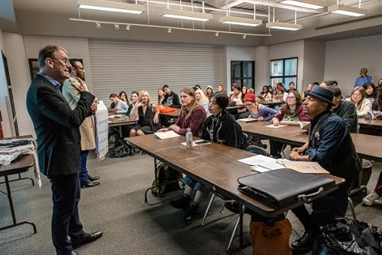 Class Is In Session--Francois Damide, President of Solstiss USA, speaking to FIDM students and educators during the Solstiss X FIDM Lace Master Class--FIDM Los Angeles