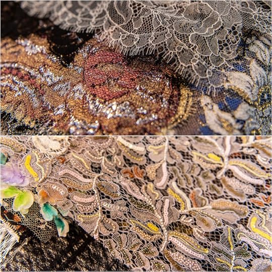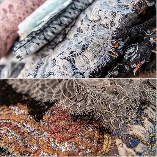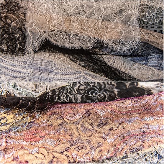 The Laces--Francois Damide brought many headers of Solstiss Lace to show the FIDM students...to let them touch, feel and admire...here are samples: