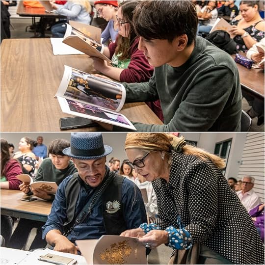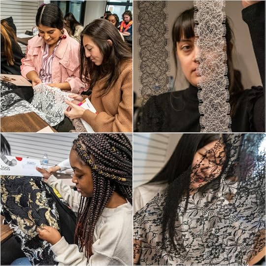 Students and FIDM Instructor Dawn Marie Forsyth (lower photo) looking over the Solstiss Lace Look Books--Solstiss X FIDM Master Class in Lace--FIDM Los Angeles