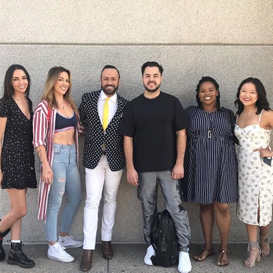 Nick Verreos with FIDM LA Open House Alumni Panel (L to R) Emma Verdugo, Lauren Sanders, Michael Smith, Dyamon James, and Grace Wang