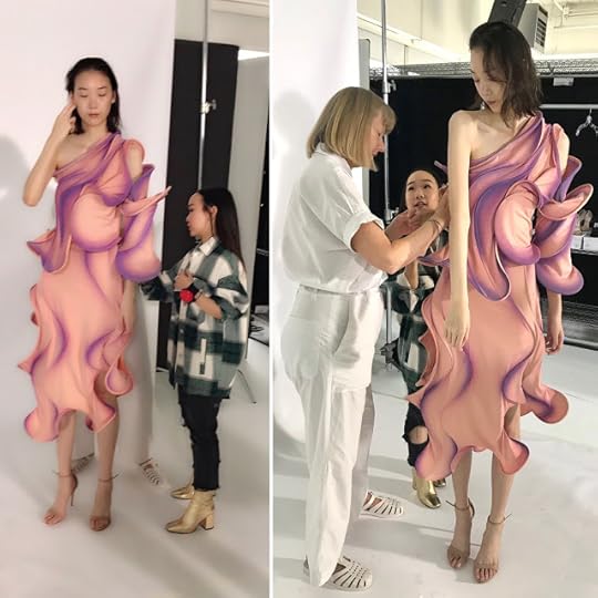 Illene had several months to create her five designs from scratch. Originally from Indonesia, the petite Martoseno inspired us with her directional creativity and original fabric manipulation ideas. In addition, she decided to custom dye the Supima cotton, adding another bespoke level to her one-of-a-kind designs. After months of designing, dyeing, fabric manipulating....it was time for NYC and the Final Fittings for the New York Fashion Week 2019 Supima Design Competition show: