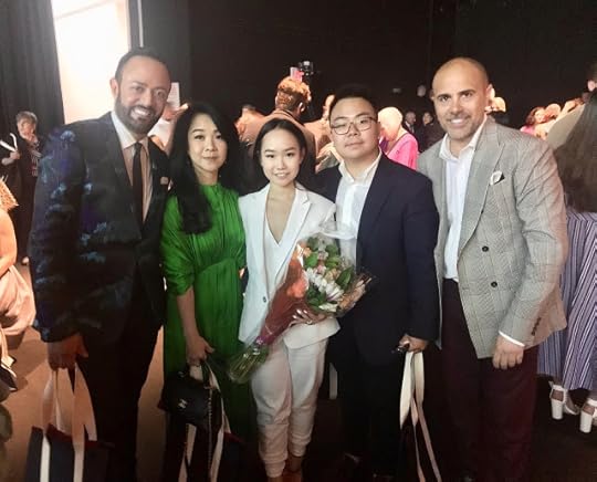 Family Support--FIDM Supima Finalist Illene Martoseno (center) with her mother (2nd from left) and brother (2nd from right), and FIDM Fashion design Co-Chairs Nick Verreos and David Paul--2019 Supima Design Competition, Pier 59 Studios, Chelsea Piers NYC