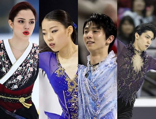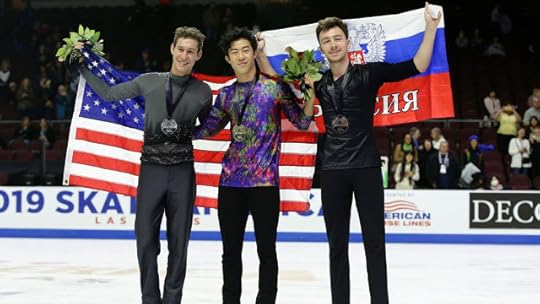 Costume Razzle Dazzle--(L to R) Evgenia Medvedeva of Russia, Rika Kihira of Japan, Yuzuru Hanyu of Japan--Skate Canada International 2019