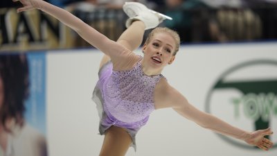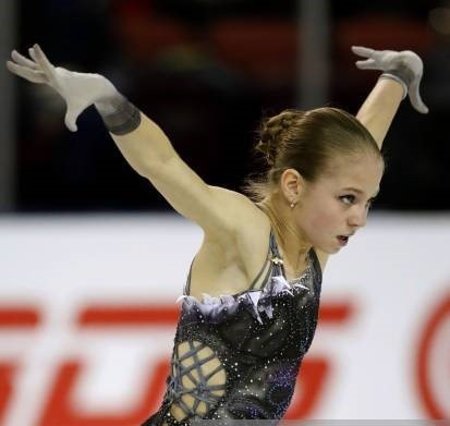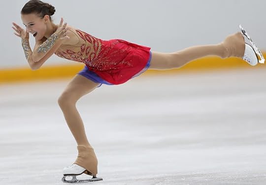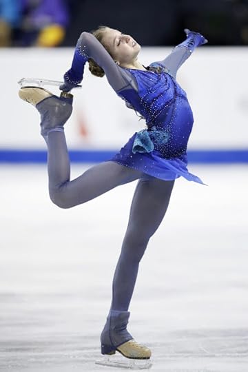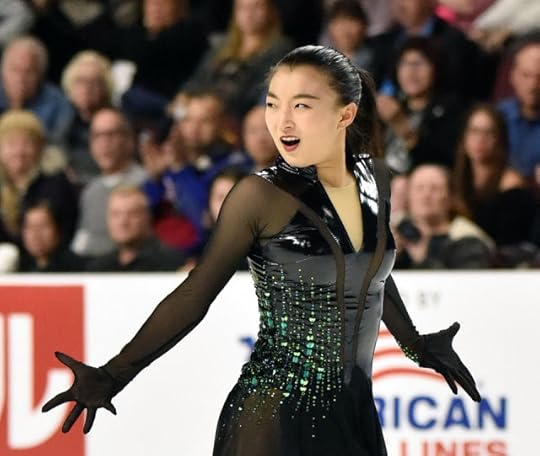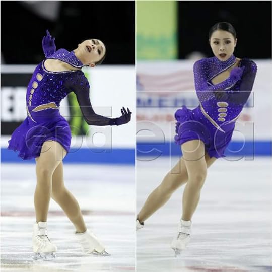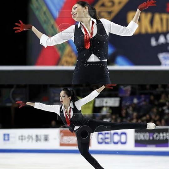 She flipped the top of the costume down and did one of those on-the-spot "Costume Changes" that we have seen as of late in these Figure Skating Competitions to expose something different. The "new" costume became darker, more "mysterious". To be honest, I am not sure if I am a fan of either the first or the "costume change" evolution. It looks a little too "Witchy"/cheap Halloween costume for me.