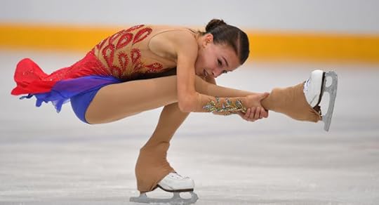Evgenia Medvedeva Russia Short Program--The two-time Olympic silver medalist skated her Short Program at the 2019 Skate Canada International to Exogenesis Symphony Part 3 by Muse. She wore this black and blue sequined jumpsuit. I thought it was very fashionable, directional and a lovely "new" look for her. Even though she didn't do too well here, I really liked this costume.