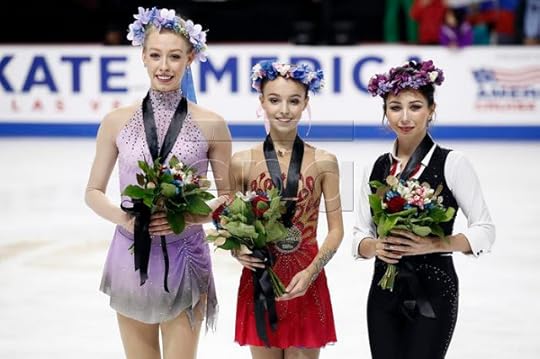 Congratulations to the TOP THREE LADIES! (L to R) Bradie Tennell of USA (Silver), Anna Shcherbakova of Russia (Gold) and Elizaveta Tuktamysheva of Russia (Bronze)--2019 Skate America Las Vegas Nevada