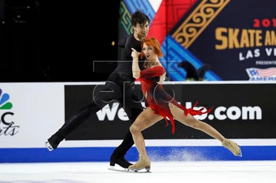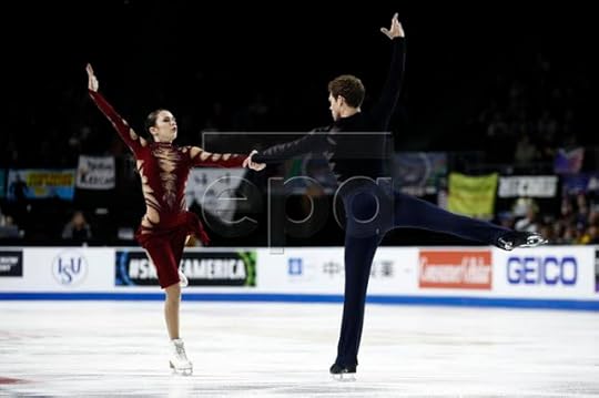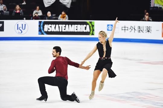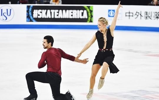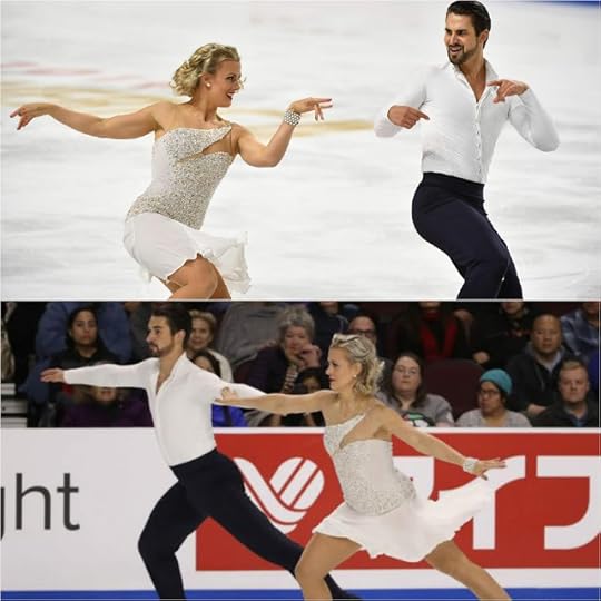 Ashley Cain-Gribble and Timothy LeDuc USA Free Skate--Cain-Gribble and LeDuc skated their Free Skate to The Middle of the World (from "Moonlight" soundtrack) by Nicholas Britell and Experience by Ludovico Einaudi. I thought these were gorgeous costumes for both Ashley and Timothy. I especially loved the dramatic back detail in Ashley's jumpsuit with its jagged-edge sequined applique and the combination of sheer with the stretch velvet. I also really liked how they both wore the pointed "hankie"/sequined scarf on their necks; they looked united as a costume team.