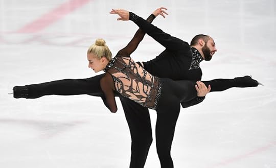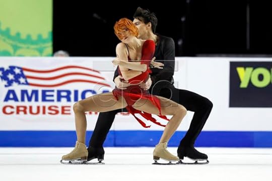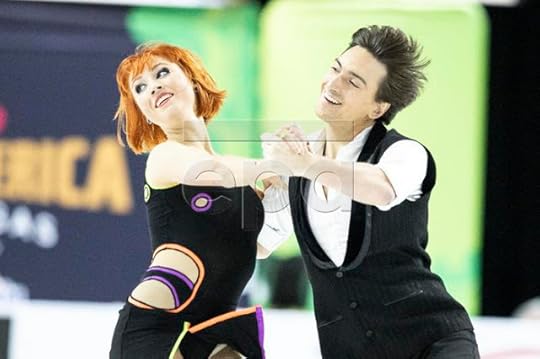 Haven Denney and Brandon Frazier USA Short Program--Americans Denney and Frazier wore these vibrant costumes for their Short Program to Quidam (Cirque du Soleil). I appreciated the bold deep lilac/royal purple color, the "Arabian Sheikha"-like costume of Haven with its wrap-around arm ties and extremely intricate sequin work. In addition, I also liked his draped top with subtle ombre dyeing.