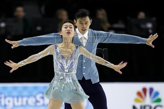 Jessica Calalang and Brian Johnson USA Free Skate--For their Free Skate to You Are the Reason (duet version) performed by Calum Scott, Leona Lewis, Calalang and Johnson wore these rather "figure skating traditional" costumes that were pretty and un-threatening (in a fashion sense). Her dress was like a costume version of a "Model Home" and his, to be honest, was slightly more fashion-exciting, in that I liked the sheerness and starry sky-like sequin work.
