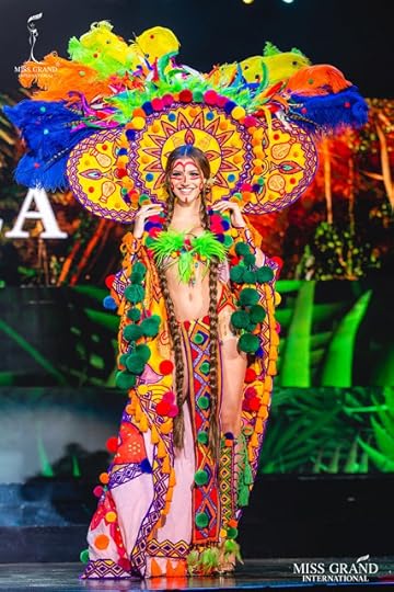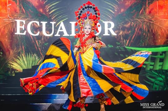 1. Miss Grand Ecuador Mara Topic--Mara shined during the 2019 Miss Grand International National Costume Show with this fabulous costume paying homage to all things ECUADOR. The costume featured a fantasy Indigenous Empress with gold sequins, red pom-poms, an outstanding headdress and an oversized cape with panels featuring the colors of the Ecuadorian flag. She even did a dance that brought the Poliedro arena's audience to their feet! If there was one critique, it would be those clunky brown wooden shoes; will someone PLEASE give her a better pair. May I suggest, gold strappy heels perhaps? But, besides that, she's MY NUMERO UNO!