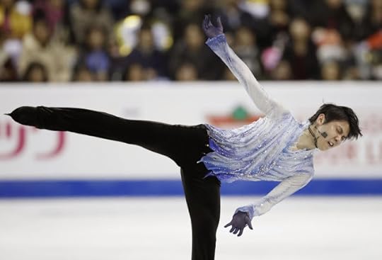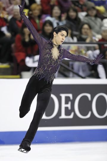 Free Skate to Origin ("Art on Ice") by Edvin Marton--This was a STUNNING costume worn by Yuzuru Hanyu. The subtle purple shading, the beautiful gold curved rhinestone design, the juxtaposition of the solid vs. the sheer, the 3D effect of the applique...all details that add up to a very Couture-like design that is right for such a Couture-like figure skater.