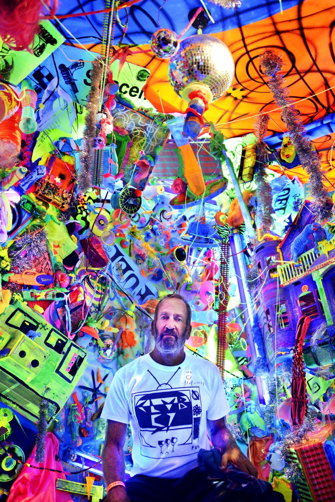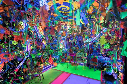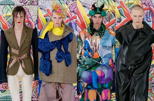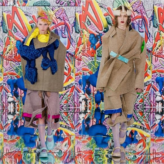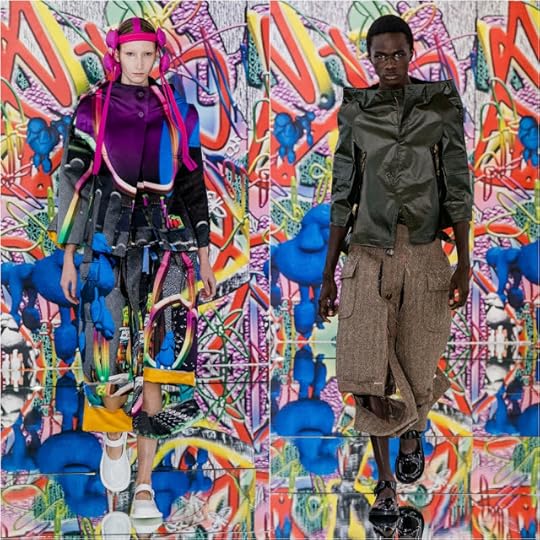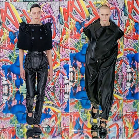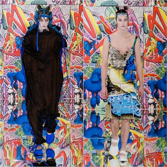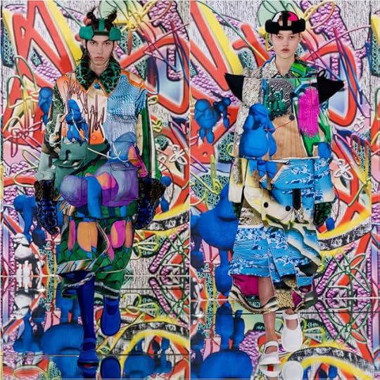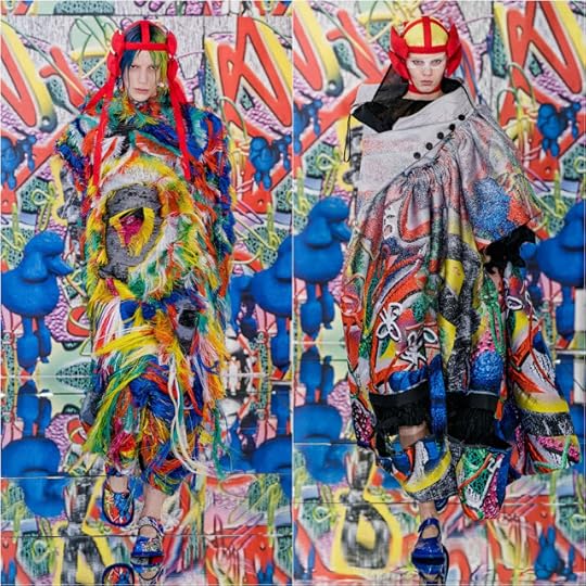 The backdrop--created by the Margiela studio, evoked the dayglo hallucinogenic images of Kenny Scharf art-and-fashion haven, Club 57.