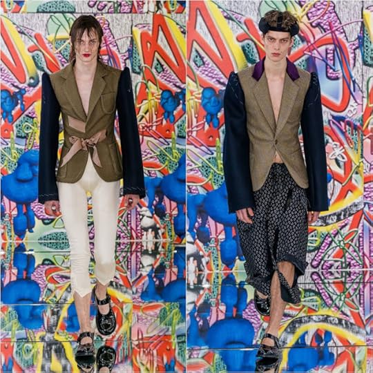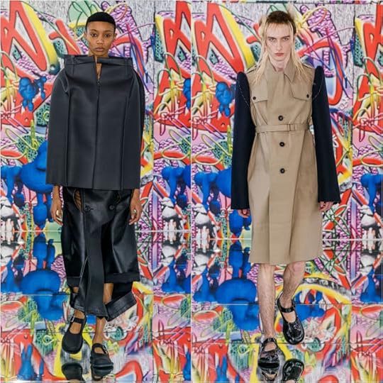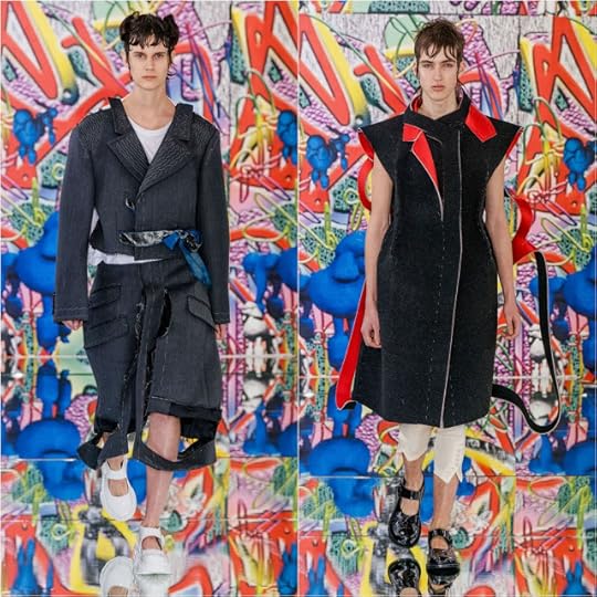 SEEN ON THE RUNWAY: Gender fluid (Is it male? Female? Who cares!), vividly colorful designs, inventive treatments in prints, hand embroidery, art reflective fabrics, exposed tailoring techniques...a Moto Jacket turned into a Jumpsuit...this is the future of "New Fashion".