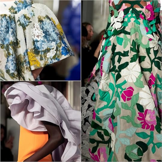 INSPIRATION: For this season, he was inspired by the designer herself (naturally!) Elsa Schiaparelli, and by nature, flowers, childhood memories, constellations. He also looked to Schiaparelli's postwar designs as opposed to the 1930's which the designer is more known for.