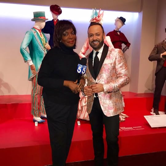 Nick Verreos--Behind-the-Scenes filming TV segment with Adrienne Alpert of ABC-7 LA--FIDM Museum 27th Art of Motion Picture Costume Design Exhibition