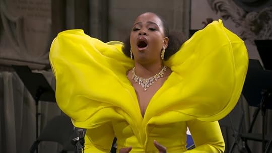 Vivre by Hélène Ségara, Riccardo Cocciante, and Danse mon Esmeralda (from "Notre Dame de Paris") by Riccardo Cocciante, performed by Garou--Lee nods to the French musical based on Victor Hugo's novel, Hunchback of Notre Dame, wearing an aubergine-colored costume with Period-like corset details, draping, and off-the-shoulder accents. I also liked this costume for its blend of Period costume with modern gown-style sensibilities...and the gold coin hip belt was fab as well!