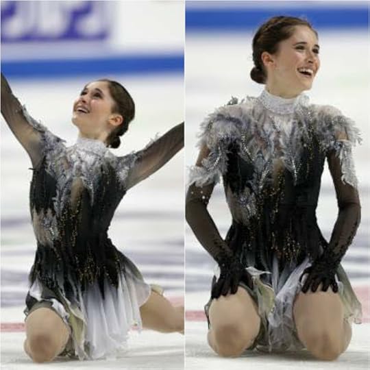 I loved the golden color and ombre shading and how the snake wraps around her body...but what really costume-impressed me was the jeweled sequined work: OUTSTANDING! This was an HAUTE figure skating costume for sure.