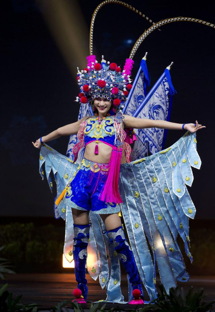 17. Miss Universe China Meisu Qin--This innovative costume from Miss Universe China was inspired by two significant Chinese dramas: The Northern Peking Opera and the Southern Sichuan Opera--both of which show strong female characters--emotional as well as artistic qualities--Miss Universe 2018 National Costumes Presentation Show, Nong Nooch Tropical Garden, Pattaya, Thailand