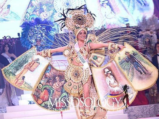 2. Miss Ecuador International Michelle Huet--Miss Ecuador actually took home the prize for Best National Costume at this year's Miss International and for me, it came in at No. 2. I thought this was an impacting and creative take on the Pre-Columbian costumes, normally featuring tons of feathers, a skimpy maillot/leotard and lots of crystals. Here we did have some of that, but in addition, there were beautiful depictions of Ecuadorian life and culture--from the indigenous to the Mestizo...in the costume itself as she opened it up onstage. It was as if she was the Queen of all of Ecuador, as seen though this one stunning costume.
