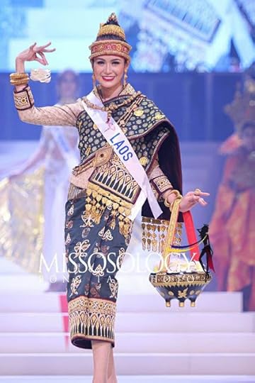 9. Miss Laos International Piyamarth Phounpaseuth--Traditional, gorgeous and stylish. Piyamarth represented her nation well in this beautiful costume featuring the lovely silks and gold adornments from her nation including the "Sinh" tube skirt and over-the-shoulder shawl.
