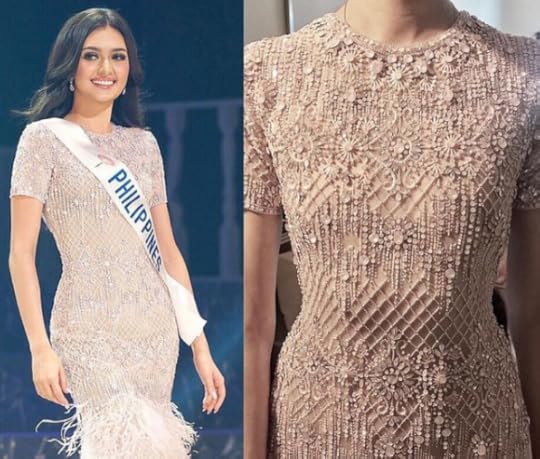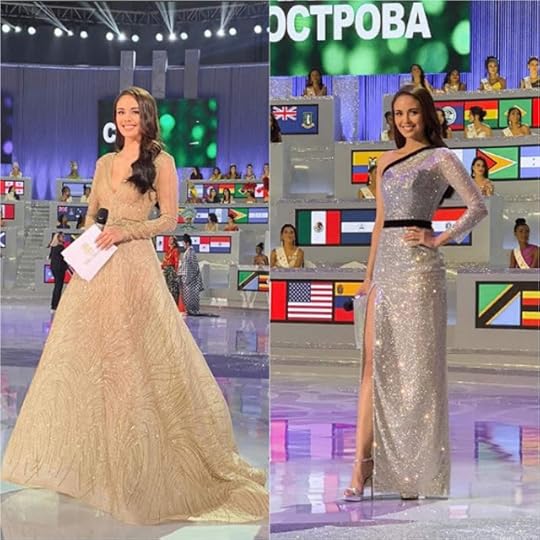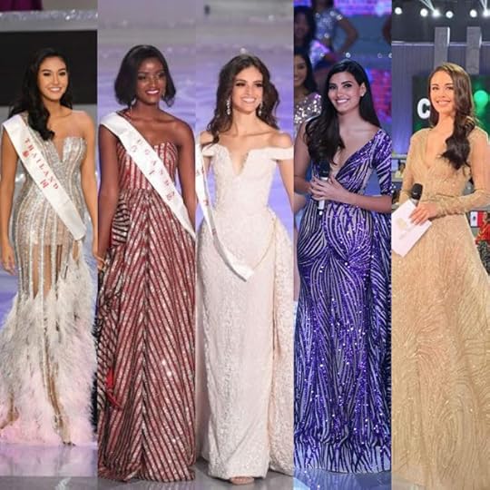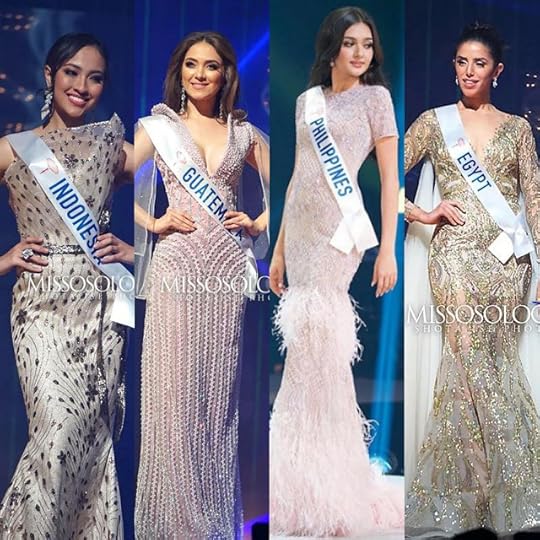 Now, time to discuss the EVENING GOWNS! Ivory and gold were popular "colors" among the Evening Gowns seen at the Miss International 2018 Finals--as well as sequined gowns--and for some reason in my TOP TEN , they almost ALL were within that range, save for one. Let's get to it: