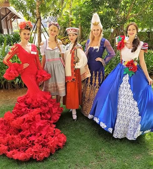 European Costumed Beauties--(L to R) Miss World Spain Amaia Izar Leache, Miss World Germany Christine Keller, Miss World Latvia Daniela Gods-Romanovska, Miss World Iceland Erla Olafsdottir and Miss World Portugal Carla Rodrigues