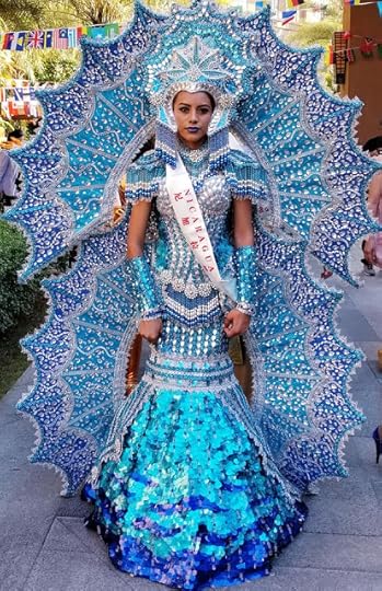 10. Miss Sweden International Izabell Hahn--In the No. 10 spot of my Top Ten National Costumes of Miss International 2018, I wanted to put Miss Sweden International. This was the best one from the European contestants, showing a nod to the traditional costume with the impacting blue, white and yellow colors plus stunning sequined embroidery work. This was one of the nicest "Miss Sweden" costumes I have seen in a long time! Good work.