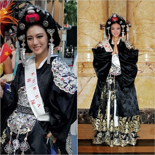 Miss World Korea Bo Ah Cho--Korea's contestants always wear gorgeous costumes and this one worn by Miss World Korea's 2018 beauty is no exception. It is exceptional in its design, stage impact and blends both traditional with high style.