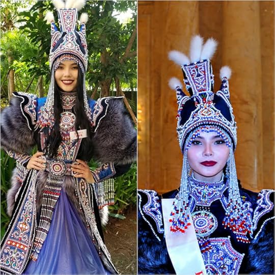 Miss World Russia Natalya Stroeva--Natalya is the first Russian beauty queen of Asian heritage to represent her nation at Miss World. She is wearing a traditional costume from the Republic of Sakha (Yakutia) in Russia which she was the representative of for her national pageant. The costume featured intricate bead work, shimmering colors, a stunning headdress and fur sleeves. It all added up to one of my favorites from Miss World 2018 "Dances of the World" National Costumes.